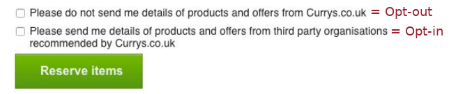 Trick questions: framing questions to mislead the users. While reading quickly, the user might think he’s opting-out while he’s actually opting-in. It works even better when used in series alternating opt-in and opt-out like on the example below: